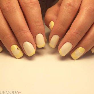 После того, как вы выбрали оттенки и предоставили мастеру свободу, он сможет нанести вам лак на ногти самыми разными способами, создавая неповторимые сюжеты и переходы. Самые популярные, это именно плавные переходы цвета на ногтях. Например, когда солнечный жёлтый плавно переходит в белый, или нежно-голубой в нежно-розовый.
