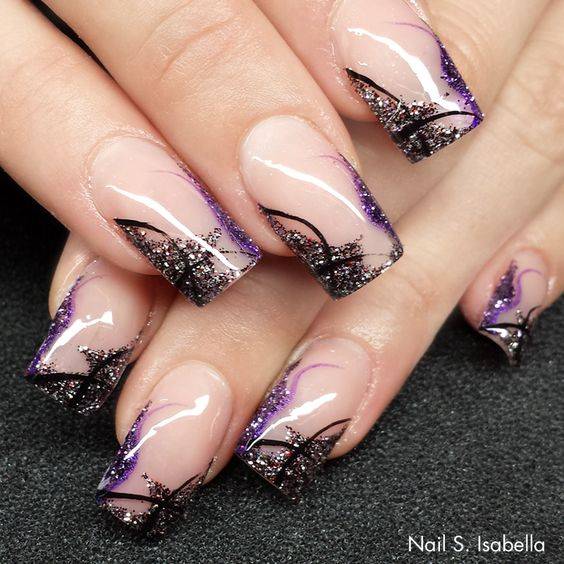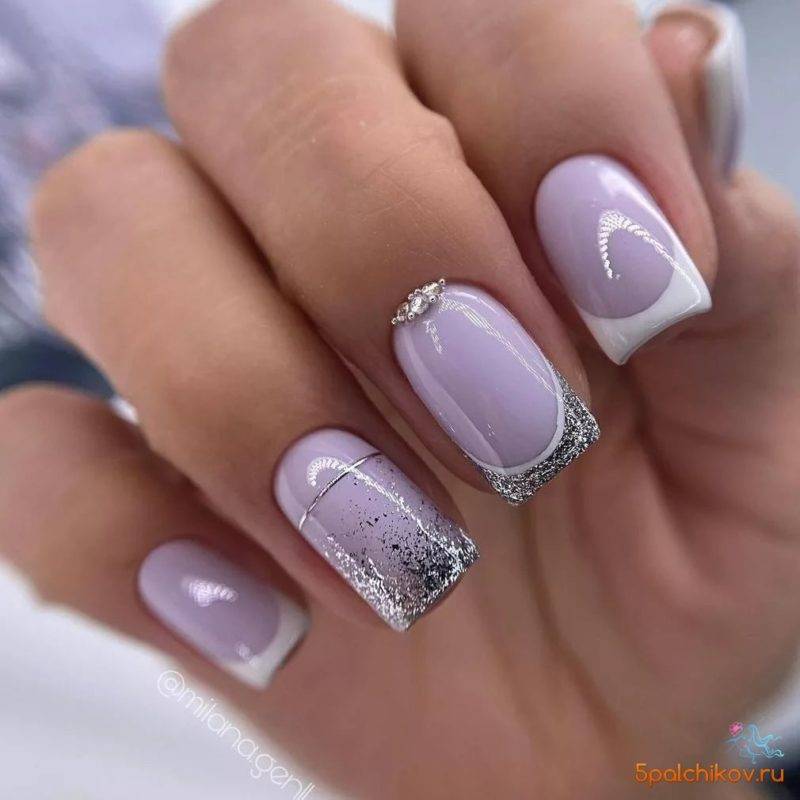 Сиреневый в своем исполнении на короткую длину схож с розовыми тонами. Задача та же, выполнение с различными дизайнами то же, но отличие лишь в том, что это будет не надоедливый розовый, а редкий сиреневый оттенок.