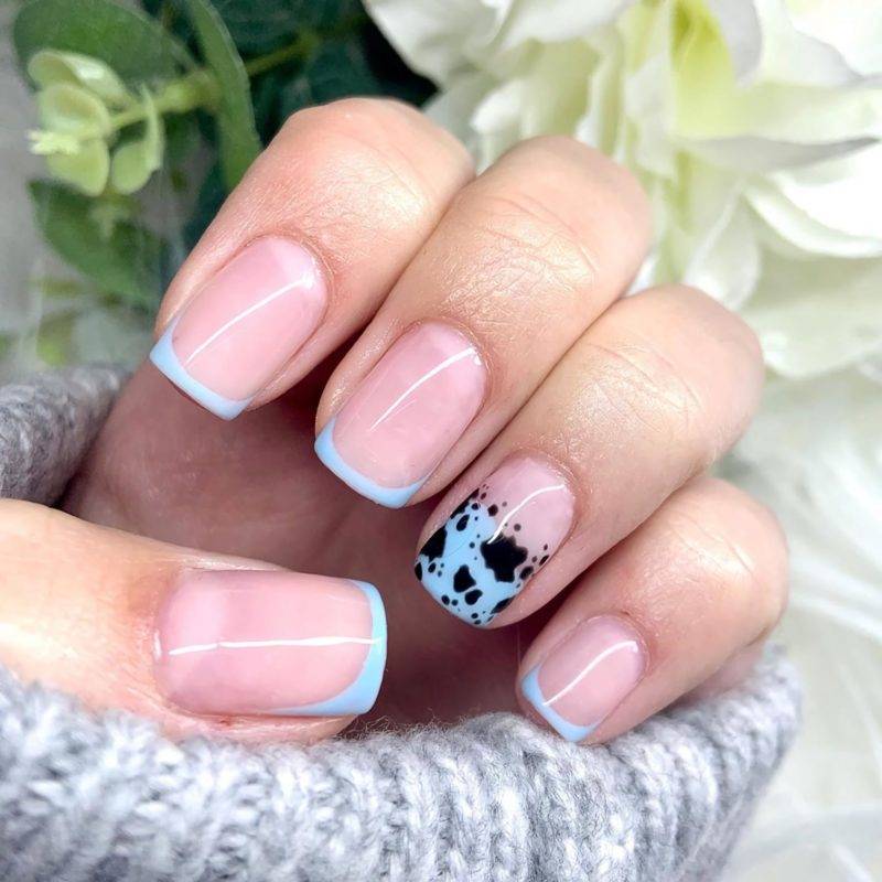 Голубой прекрасно сочетается с белым, нежно-желтым или розовым. Этот цвет часто используют в новогоднем варианте нейл арта.