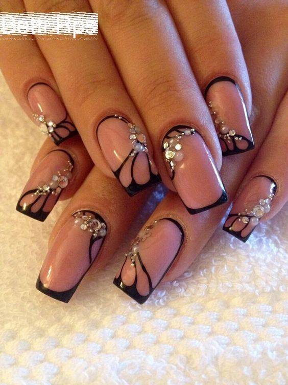 Стразы, как дополнительный элемент декорирования, могут находиться в любом месте на ногте, могут быть размещены в форме какой-либо фигуры, узора, могут размещаться хаотично.