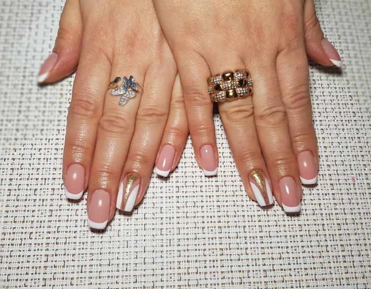 Как свои, так и нарощенные ноготки при нанесении на них узоров различными украшениями, становятся одной из наиболее привлекающих внимание деталей Вашей внешности, поэтому Ваши ручки должны иметь ухоженный и привлекательный вид. Для этого стоит контролировать состояние кожи рук, ведь красивые ногти более выигрышно смотрятся на руках с нежной и гладкой кожей. При выборе такого дизайна, как французский маникюр с оформлением свободного ногтевого края, часть пальцев можно оформить одного цвета, а по краю ногтя остальных пальцев – другого