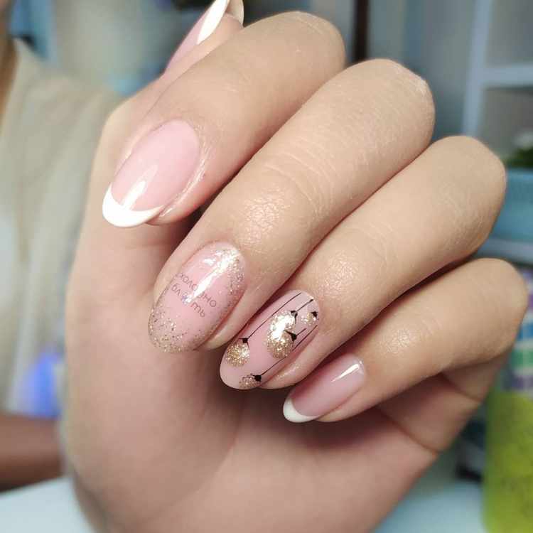 Овальные ноготки женственные и нежные. Для них подходит аккуратный тонкий френч с романтичным дизайном. Форма улыбки может быть любой. Если ногти длинные выбирайте любой декор и придумывайте любой дизайн. Ведь тренд 2024 года- индивидуальность и уникальность.