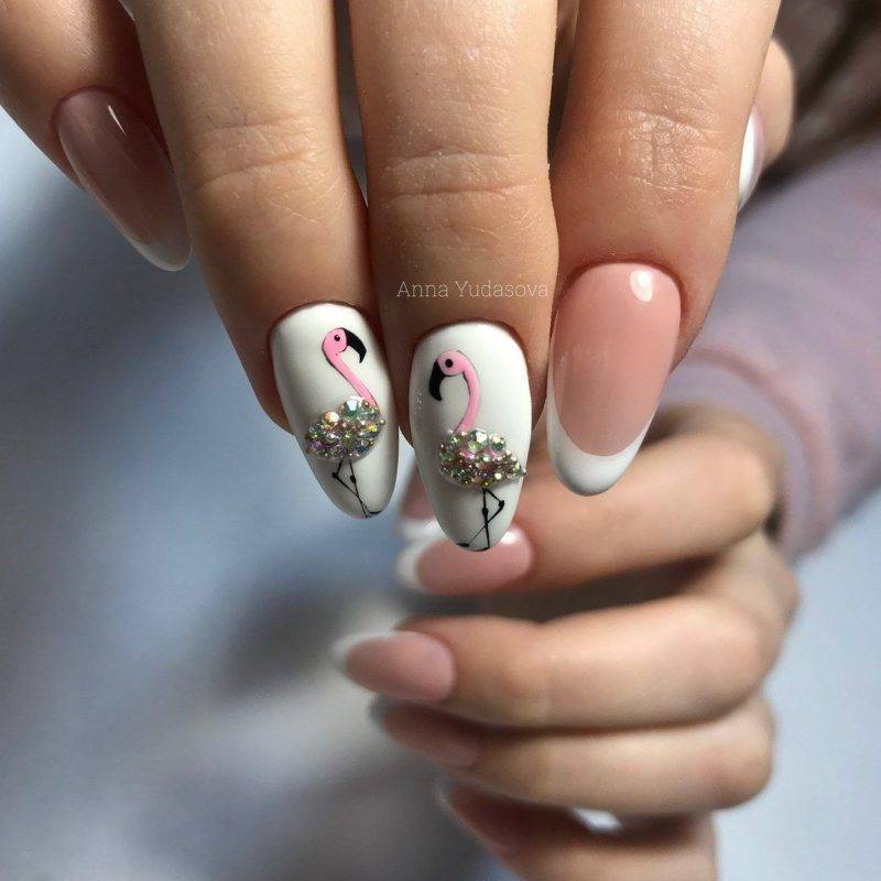 Дизайн стоит выбирать аккуратно — подходят любые виды, но в умеренном исполнении. База слишком мала, чтобы максимально забивать ее декором. Мастера рекомендуют выделять один или два пальчика.