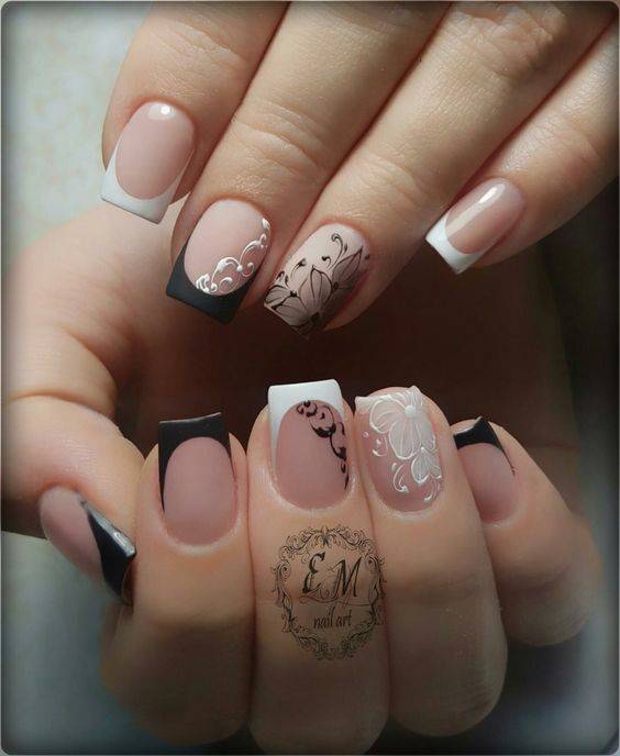 Короткие черно-белые ногти: фото-идеи сочетания черного и белого 2021-2022