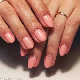 Романтизм такого оттенка трудно переоценить. Когда девушке хочется нежности, легкости и красоты, она начинает выбирать тот самый розовый из всех его оттенков. Нежно-розовый тон на короткую длину ногтевой пластины будет беспроигрышным вариантом.