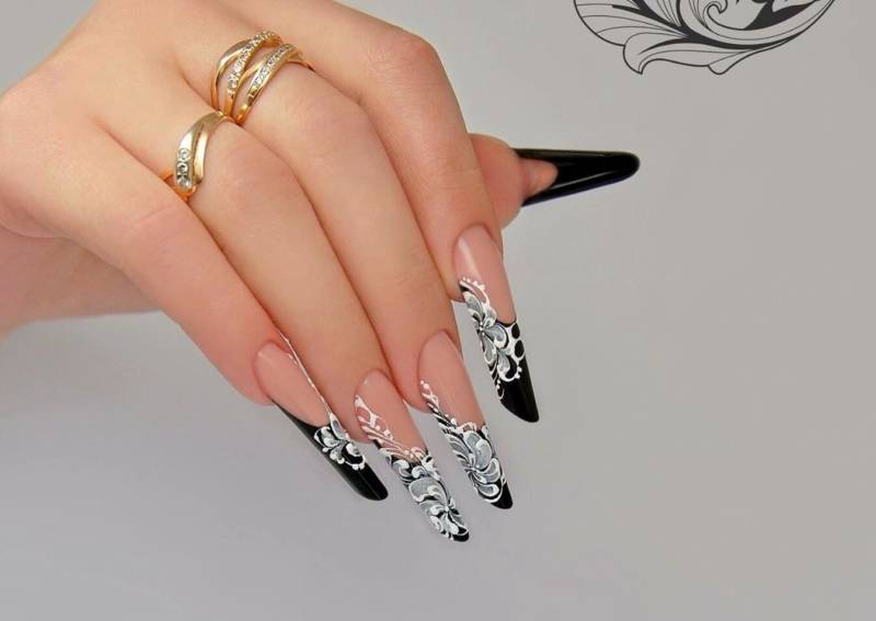Для формы «стиллет» идеально подходят следующие варианты оформления ногтей: