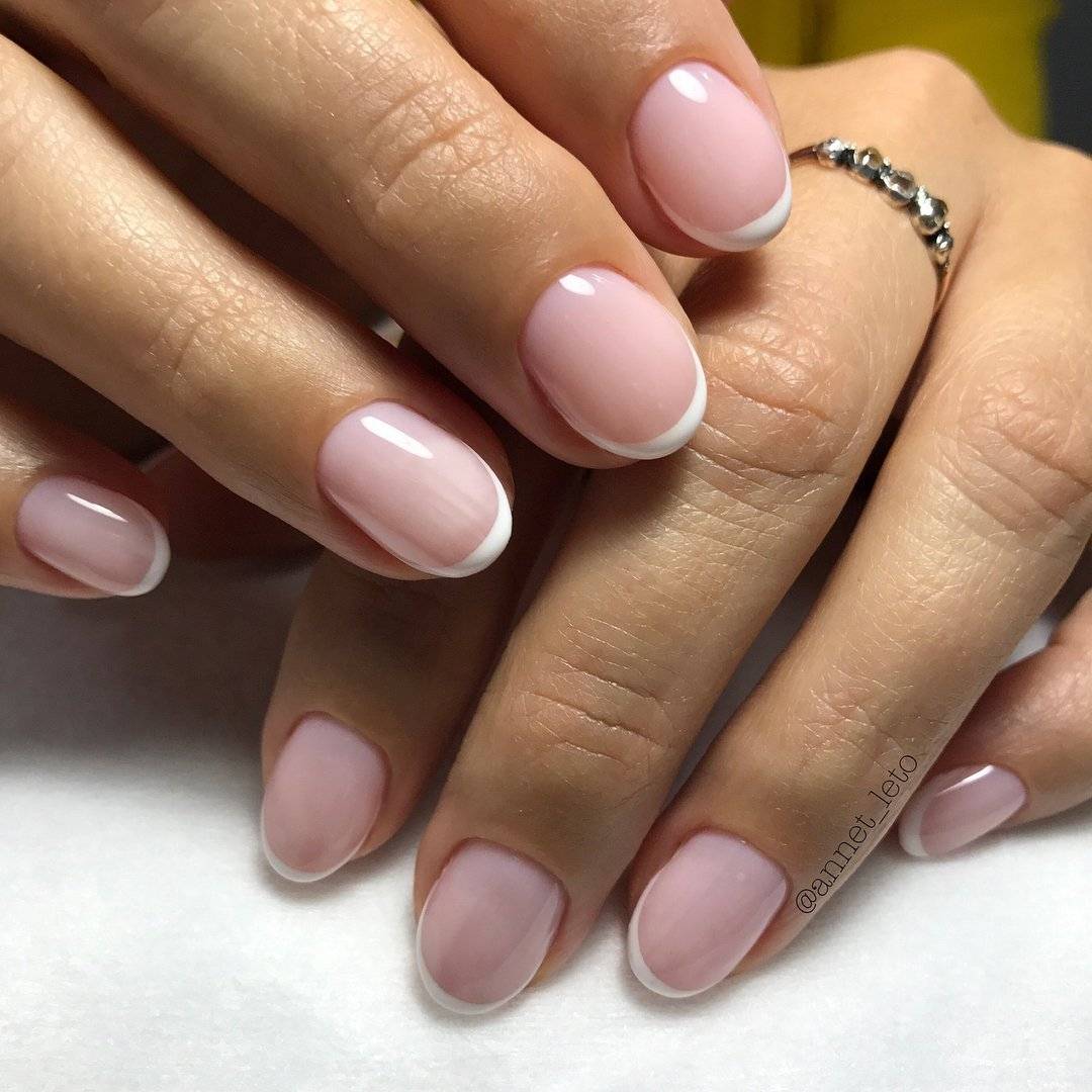 На коротких овальных ногтях идеально будет смотреться классический французский маникюр. При его создании следует придерживаться правил: