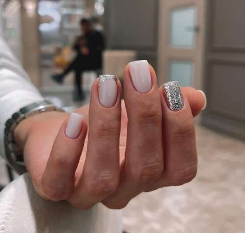 Классику любят абсолютно все девушки и женщины. Если хотите оригинальный дизайн, сделайте две тонкие линии, вместо одной. Например, белую с серебром. В таком дизайне ногтей создаются нарядные контуры «кончиков». Также можно выбрать белую основу, а френч оформить серебром. Другие вариации смотрите на фото.