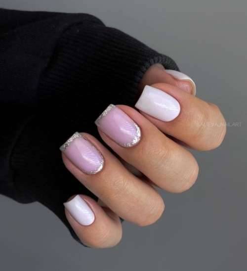 - френч с блестками — сияющие частицы можно заложить в основу или в финишное покрытие.