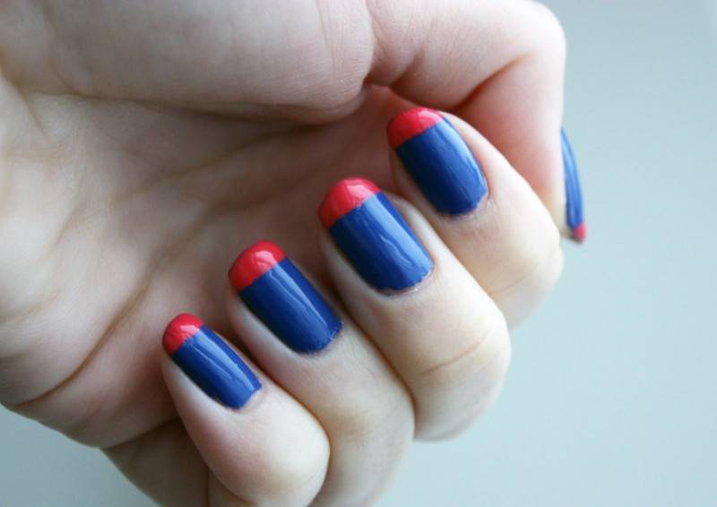 - оформление кончиков ногтей в разные цвета;