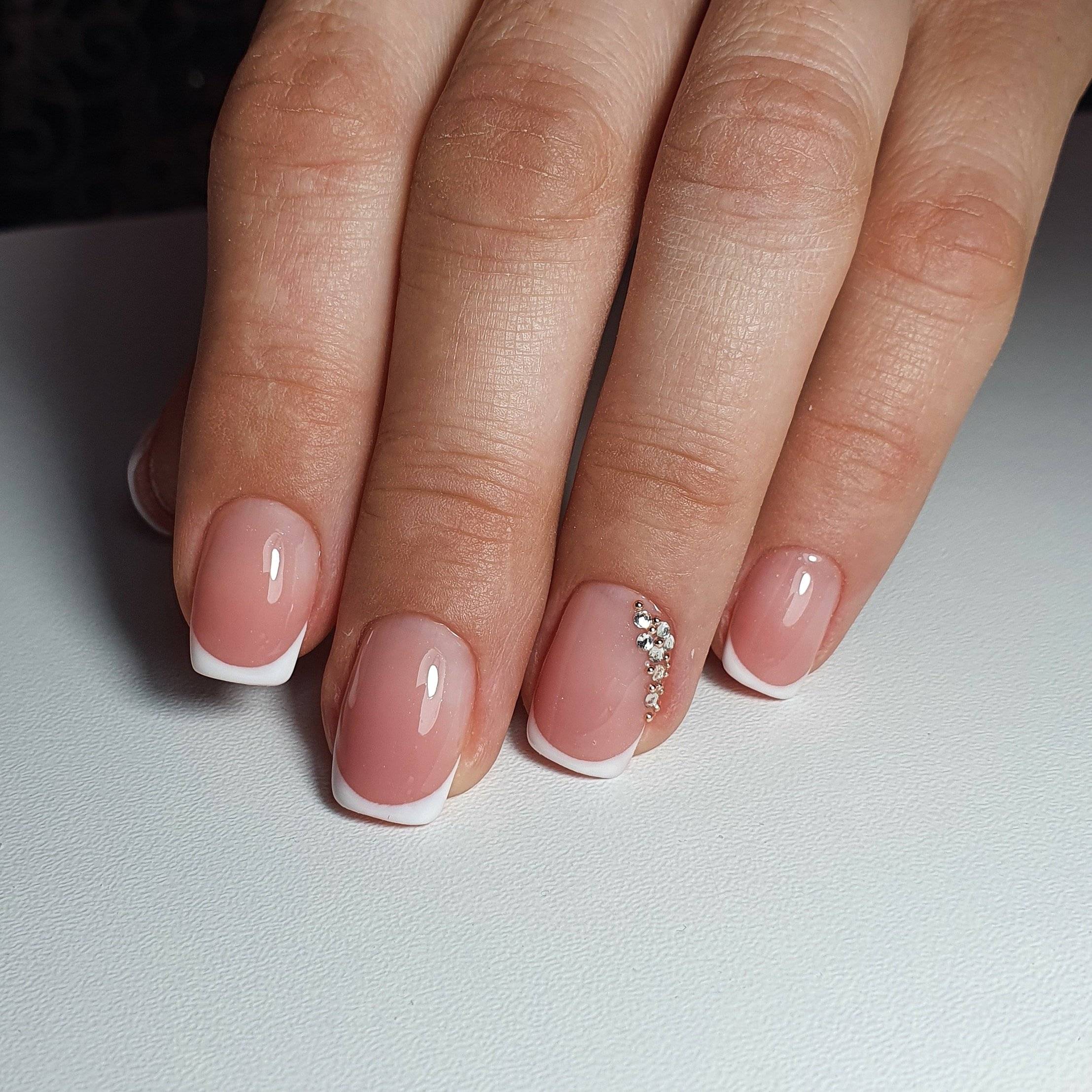 Элегантный французский маникюр с камнями: фото 2024