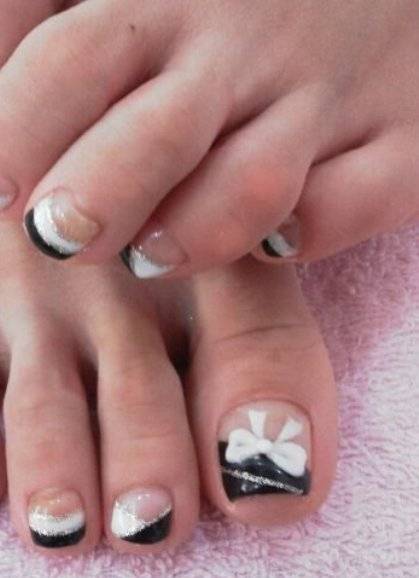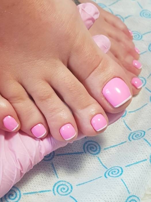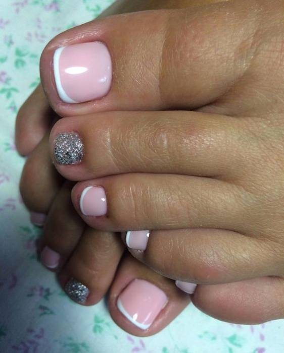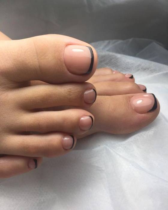 Следующий вариант – современный французский педикюр