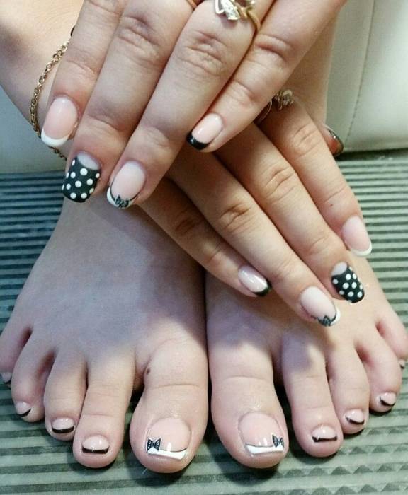 (сочетание классики с различными рисунками на ногте).