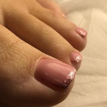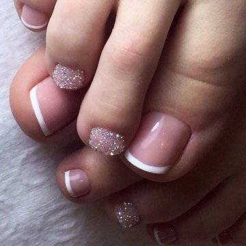 Это один из самых удобных материалов для создания красивого классического педикюра. Размер пластины ногтей на ногах не позволяет реализовать сложный, многослойный дизайн. С блесками же ноготки всегда выглядят опрятно и довольно таки ярко.
