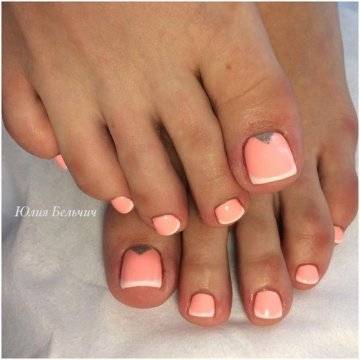 - По фен-шуй . Если вы хотите добавить привлекательности и броскости своим ножкам, дополните классический дизайн отделкой одного или двух пальчиков. В этом случае можно использовать контрастный лак или декор.