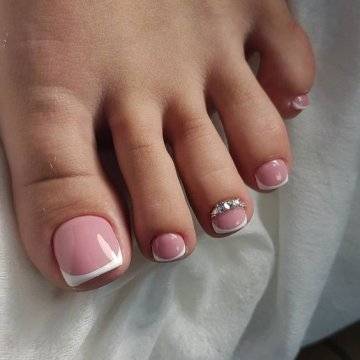 Помимо красивых ноготков, обладательница французского педикюра получит ухоженную, мягкую кожу ступней. К тому же технология создания данного педикюра поможет сохранить здоровье и красоту ногтевой пластины.