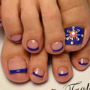 Педикюр активно следует за модой. В нем можно найти отражение всех последних тенденций ногтевого сервиса. Несмотря на то, что в этом дизайне присутствуют свои особенности, он успешно справляется со сложностями.