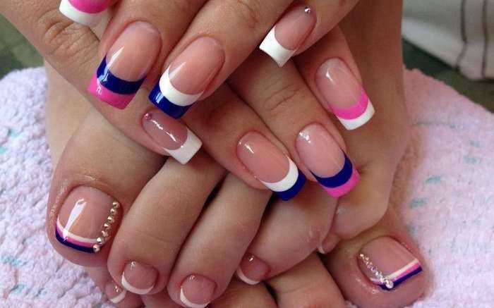 Девушкам, которым природа не подарила красивую пластины, либо ногти у них просто очень ломкие, предоставляется возможность их нарастить. Можно сделать френч гелем, на ногах такой прослужит своей хозяйке около 3-4 недель. Также можно применять и акрил.