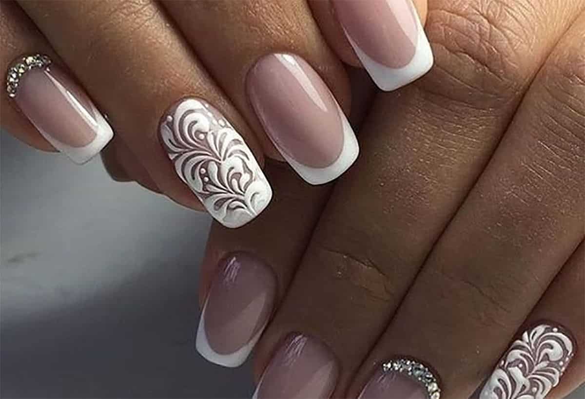 Они различаются по форме, исполнению и цветам. Существует несколько видов: классический, ассиметричный, с разными линиями улыбки. Всё зависит от формы ногтей, техники нанесения, дополнительных украшений, стилистики.