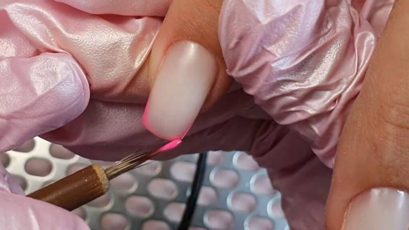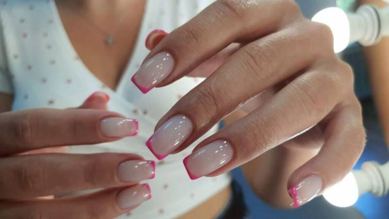 Тренд на прозрачность ноготков в 2023 году сохраняется, ведь такой дизайн универсален, смотрится натурально и утончённо. Для работы нужно приготовить прозрачную или полупрозрачную основу, ярко-розовый лак и закрепитель (финишный топ).