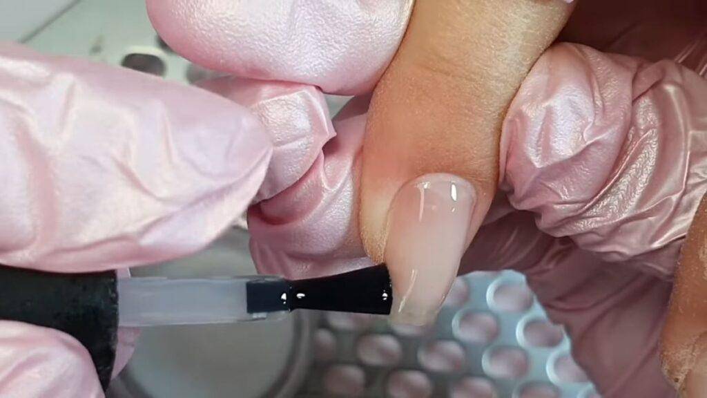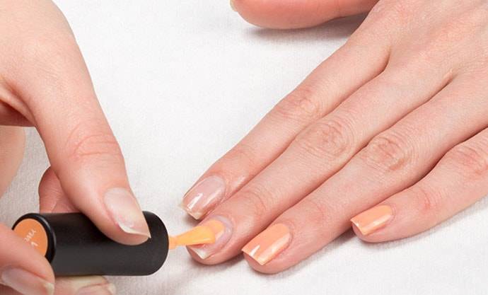 Обработанные и подпиленные ногти покрывают основой для маникюра не менее, чем в два слоя.