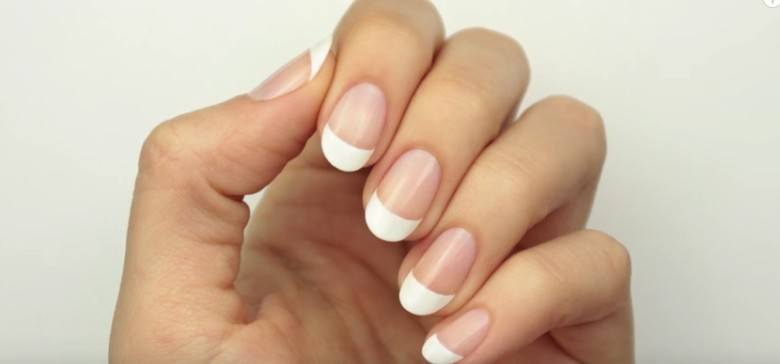 Красивый маникюр может выглядеть стильно и элегантно даже без рисунков и страз. Френч – это классика в нейл-дизайне, но теперь бьюти-эксперты советуют экспериментировать с сочетаниями цветов и текстурами. К тому же этот маникюр можно с легкостью сделать в домашних условиях при помощи трафарета. Последовательность действий следующая:
