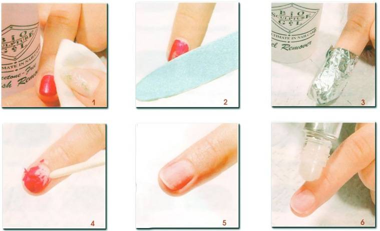 , которые позволяют избавиться от покрытия за несколько минут. Как же это работает? Нужно приготовить десять небольших ватных дисков, намочить их специальным средством, а затем они заворачиваются плотно в фольгу. Происходит процесс обратный полимеризации и через несколько минут можно будет снять покрытие при помощи пушера или апельсиновой палочки