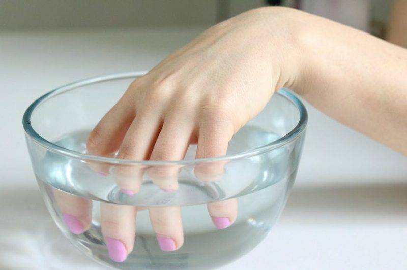 - Используют ледяные ванны. Кончики пальцев опускают в посуду с водой и кусочками льда, держат до 10-15 минут. От холода покрытие затвердеет, но и руки сильно замерзнут.