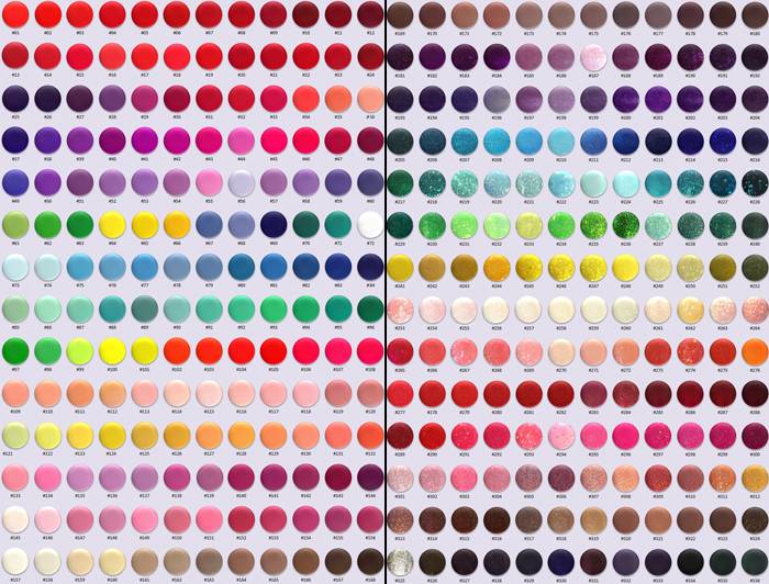 Благодаря серии Гель полиш, можно приобрести широкую цветовую палитру, которая насчитывает не менее 90 оттенков. Разнообразие последних удивляет – от белого до угольно-черного. Такая серия покрытия отличается насыщенностью окраса и идеально ровным зеркальным блеском, такая особенность не исчезнет в течение всего срока эксплуатации гель-лака. На некоторых средствах этой серии имеются блестки.