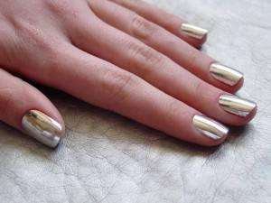 Интересный дизайн ногтей гель лаком металлического блеска. Новый яркий броский тренд для настоящих богинь и королев как-никогда актуален. Если используем полное покрытие ногтевой пластинки, то рукам не требуется дополнительных украшений.