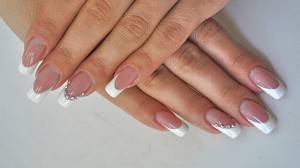 Маникюр в белом цвете часто делают на свадьбу, дополнительно украшая его стразами, аппликациями либо жемчугом. Выбирая белое УФ-покрытие для ногтей, отдавайте предпочтение качественным гель-лакам, т.к. дешевые, как правило, оказываются жидкой консистенции и неровно покрывают ногти, остаются пробелы и подтеки. Это правило касается всей базовой и светлой палитры. Обычно, сэкономить, не потеряв при этом в качестве, можно на цветных и более темных оттенках. Они практически у всех производителей более густые.