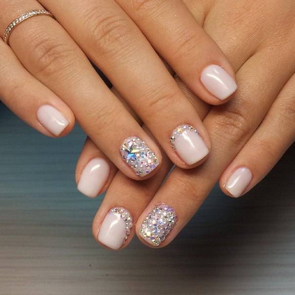 Стразы придают маникюру особой роскоши. Это отличный вариант для любого торжества, однако каждый десь его тоже носить можно.