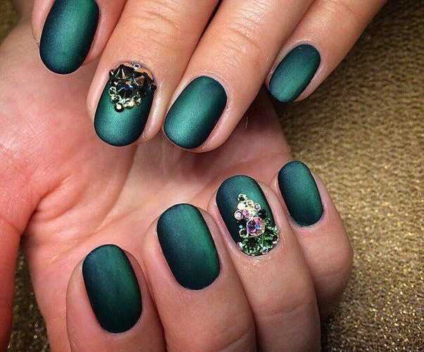 Матовые цвета остается в моде как минимум еще на один год. Они выигрышно смотрятся при сочетании сочных и глубоких тонов. Матовый маникюр на коротких ноготках смотрится весьма завораживающе: