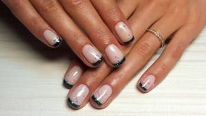 - импровизированный френч контрастным цветом на нюдовом фоне.