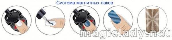 В видео-записях профессиональных салонных мастеров обычно показывают именно специальные магниты – на удобной ручке. Магнит подносится строго над ногтем, не прокручивается, на несколько секунд.