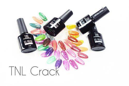 Необычная новинка, представлена в коллекции лаков TNL, содержит более 30 цветов. Эти средства создают на ногтях эффект растрескивавшегося покрытия. Выглядит такой дизайн крайне необычно, напоминая трещины в картинах именитых художников прошлых веков. Создается эффект старины при помощи сочетания двух оттенков. В качестве подложки чаще всего используют светлые тона (белый, золотистый, серебряный).