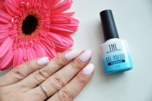 Цвета гель-лаков ТНЛ из серии термо представлены более, чем 40 разнообразными оттенками. Необычно смотрятся номера таких ярких лаков, как 29 (ярко-розовый), 45 (хвойно-лаймовый), 41 (апельсиново-желтый).