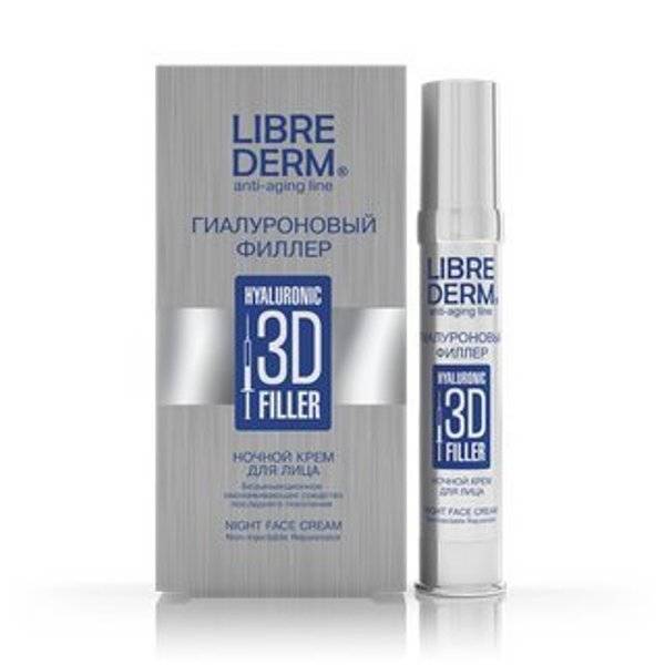 Косметическое средство 3Д филлер “Либридерм” по уходу за поверхностью дермы лица является заменителем так называемых уколов красоты, о которых наслышаны все. К косметике с антивозрастным воздействием относится крем-филлер с гиалуроновой кислотой. Пользователей потрясает простой и быстрый результат после его применения. Это напрямую связано с добавлением в крем гиалуроновой кислоты, которая на короткий промежуток времени способна разгладить морщины.