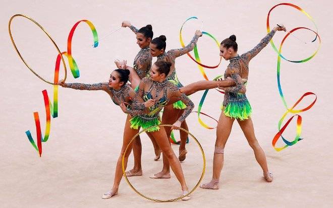 Спортивная гимнастика — соревнования, включающие элементы акробатики, опорные прыжки, упражнения на кольцах, брусьях, перекладине, коне, бревне. Художественная — танцевальные элементы, гимнастические упражнения на ковре с предметом — булавой, лентами, скакалкой, мячом — или без него.