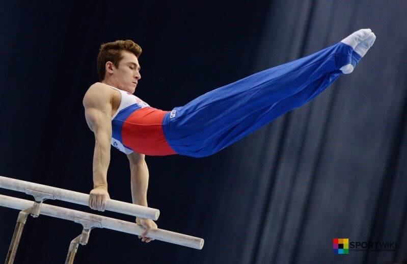 Упражнения на брусьях. Мужские упражнения на брусьях сочетают в себе динамичные и статичные элементы. Гимнаст должен использовать всю длину снаряда, выполнять элементы над и под брусьями. Упражнения обязательно должны оканчиваться эффектным соскоком.