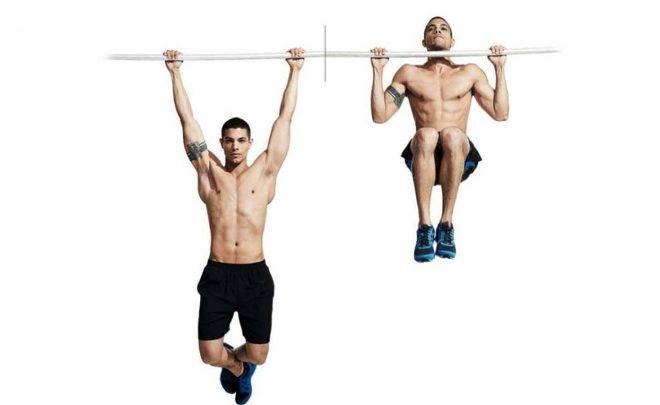 Для выполнения упражнения нужно ухватить перекладину обратным хватом и подняться как можно выше, согнув руки в локтях. Ноги нужно держать вместе и следить за тем, чтобы тело не слишком раскачивалось.