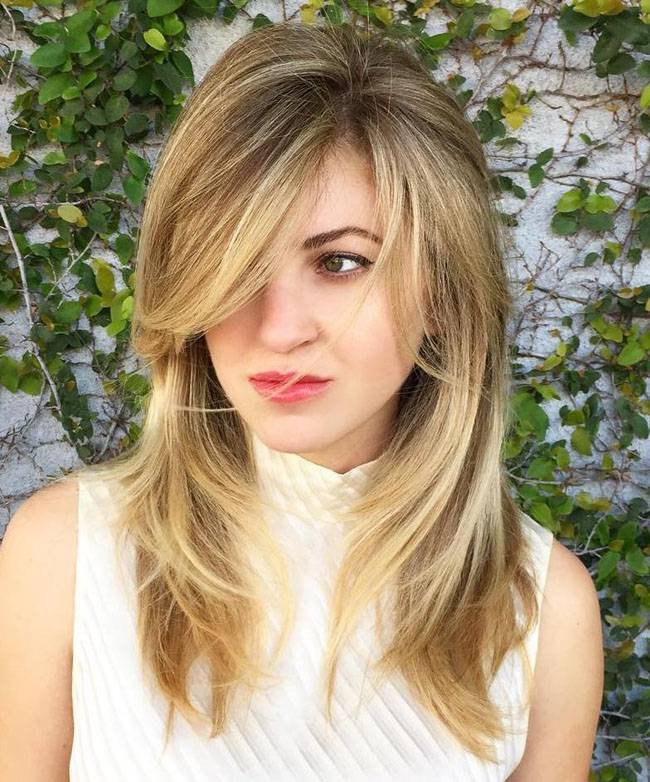 Длинноволосым девушкам справиться с укладкой гораздо проще. Достаточно регулярно подстригать челку и кончики волос. Для объемной прически длинные волосы можно подстричь каскадом или лесенкой.