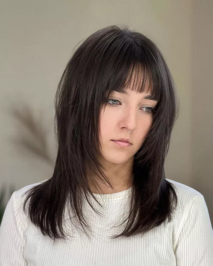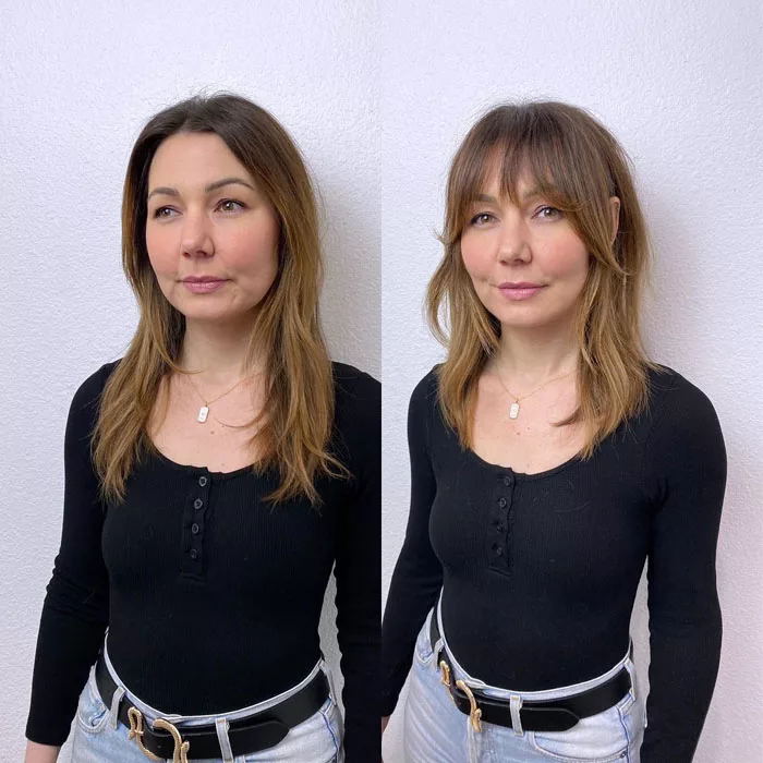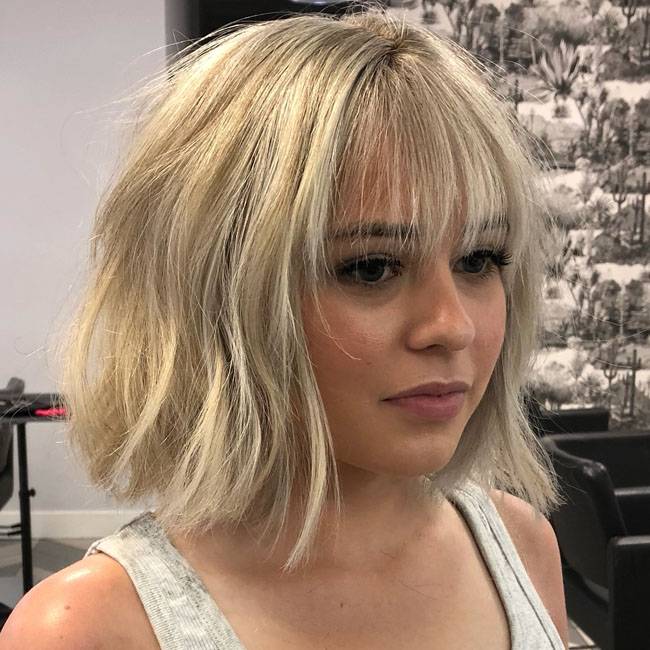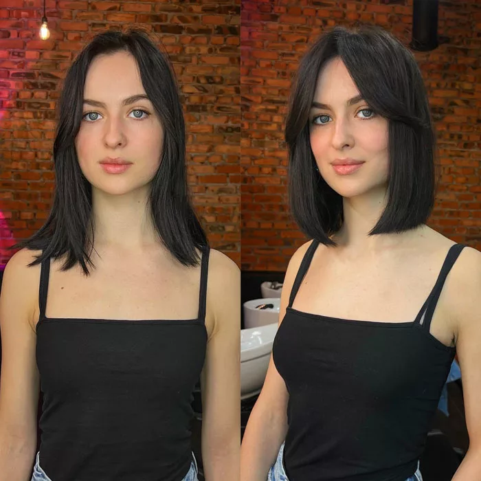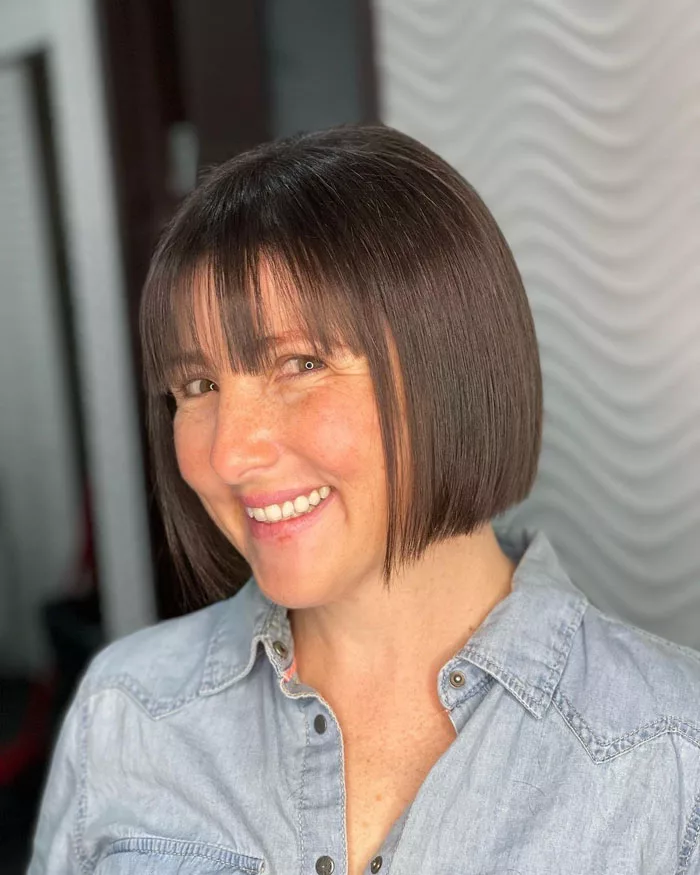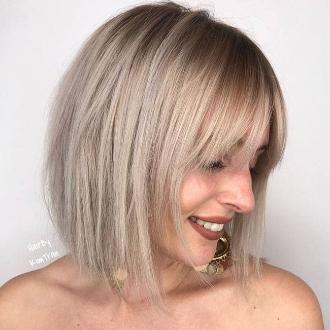 Если вы ищете ультра-шикарный и изысканный стиль, стрижка с челкой — отличный выбор. Плоская щетка-лопатка и фен — основные инструменты, которые нужно.