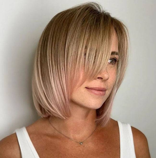 Вне зависимости от овала, у полноватых женщин черты лица достаточно крупные. Поэтому нужно избегать чрезмерной открытости. Рекомендуется отдать предпочтение такому варианту стрижки, в котором будут присутствовать обрамляющие пряди. Лесенка позволяет визуально вытянуть лицо, в то время как стрижка боб наоборот подчеркивает данную особенность.