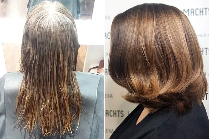 - Применение химических средств для выпрямления волос. Такие процедуры, как кератиновое выпрямление или бразильское выпрямление, могут помочь сделать волосы гладкими и прямыми на длительный период времени.