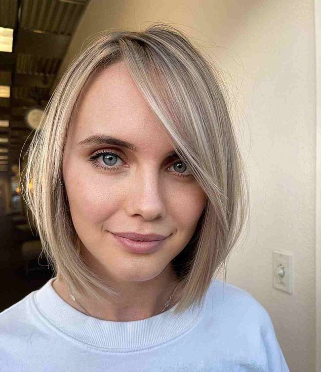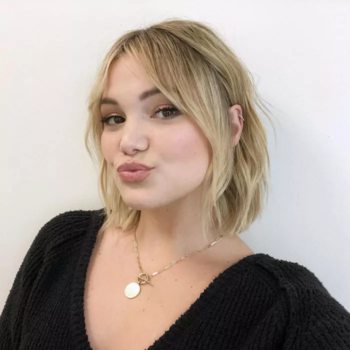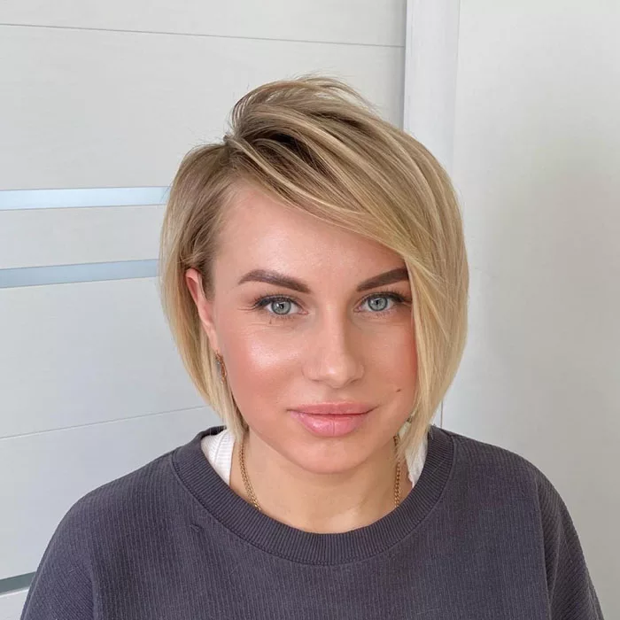 Короткая стрижка боб подойдет и будет выглядеть великолепно. Лучше всего носить прическу с боковым пробором или челкой для большего объема.