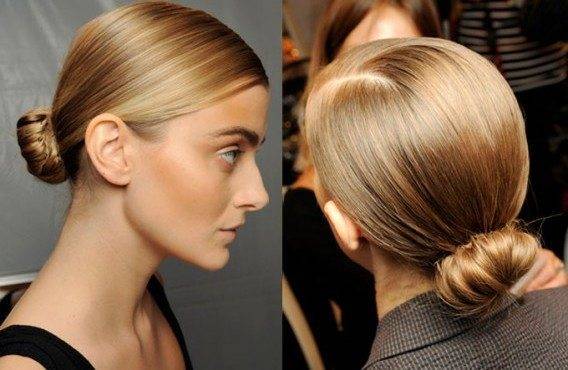 Пучок с бубликом можно выполнить всего за пять минут, при этом совершенно не обязательно обладать парикмахерскими навыками. Создание такой прически на средние волосы начинается с хвоста. Через него нужно пропустить бублик и по нему равномерно распределить волосы. Зафиксировать их резинкой. Оставшиеся концы прядей спрятать под пучок. Готовую прическу зафиксировать невидимками или шпильками.