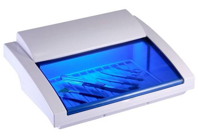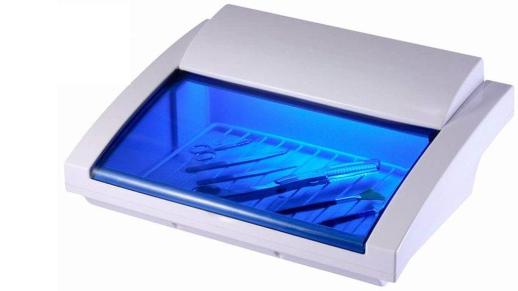 Ультрафиолетовый стерилизатор — хорошее дополнение. Он позволяет продлить срок «годности» продезинфицированного инструмента до 3 суток. После обработку рекомендуется повторить. Однако его нельзя использовать самостоятельно, поскольку инструмент не обеспечивает качественную стерилизацию.