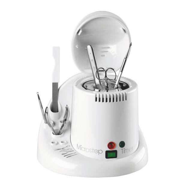 При обработке металлических маникюрных инструментов наилучших результатов можно достичь, воспользовавшись гласперленовым стерилизатором. Устройство являет собой автоклав, который дезинфицирует помещенные внутрь приборы путем нагрева и созданием высокого давления (выше атмосферного).