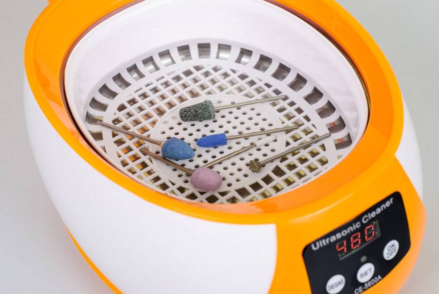 Ультразвуковой – устройство, в функционал которого входит обработка хоть и не очень больших изделий (фрезы, щипчики), но при этом имеющих труднодоступные места (впадины, зарубины и т.п.). Такой тип аппарата работает посредством добавления специального раствора, обтекающего инструмент под воздействием вибрации. Так же во время ультразвуковой работы происходит сбор многочисленных микропузырьков вместе и их лопание, благодаря чему поверхность изделия очищается от патогенных микроорганизмов и ржавчины.